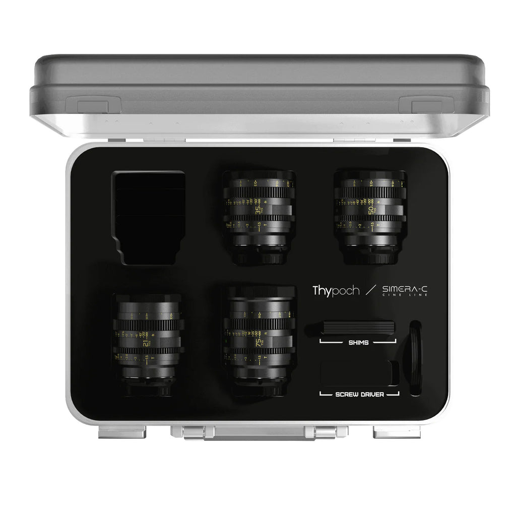 This set features 4 lens - 21mm, 35mm, 50mm & 75mm available in M mount with lens adapters for E/L/RF mounts available as well.