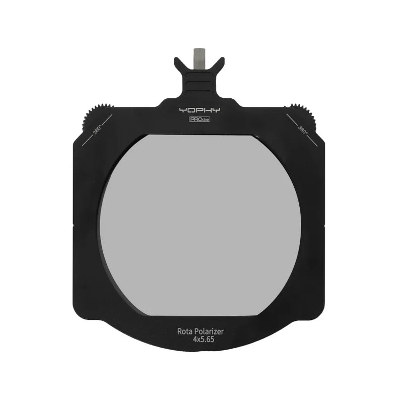 Yophy Rota Polariser Filter for use with matte boxes that accept 4x5.65" filters, this single-stage self-contained unit comes equipped with rotary wheels on both sides so your lens motors will always be able to reach.